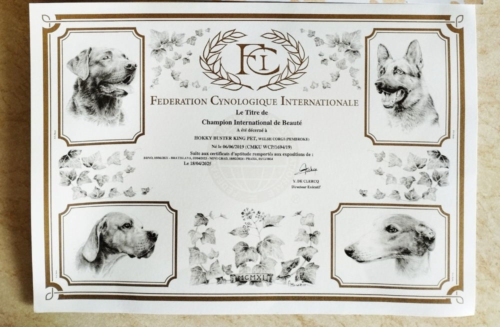 Z Mezinárodní výstavy psů v Bratislavě, konané 2.4.2023, si Hokky od paní G. Ridarčíkové odnesl CAC, CACIB, BOB a Vítěz Slovenska.