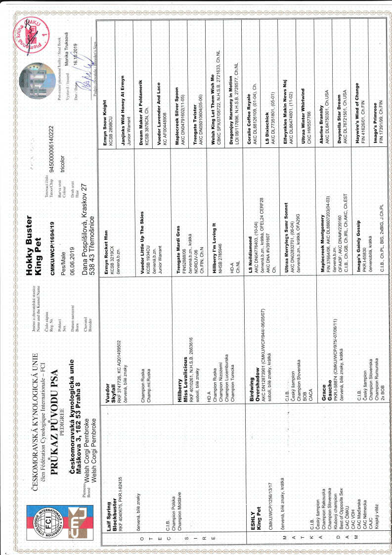 Z vrhu H zůstal doma pejsek Hokky. Snad se někde z podvědomí vynořila vzpomínka na Čikárka nebo se nám prostě jen líbil. Zkrátka ten malý tricolorek zůstal. Těď už dávno není malý, šéfuje smečce, objevuje svět a bezstarostně se vrhá do všeho nového.
